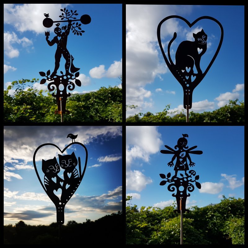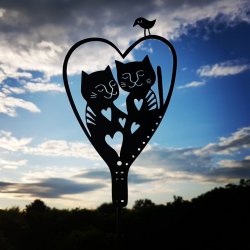 Katthjärta. Silhuettkonstverk i vacker rostig cortenplåt på pinne