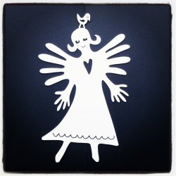 Hängande ängel i vit pulverlackad stålplåt. Passar både inomhus och utomhus.
